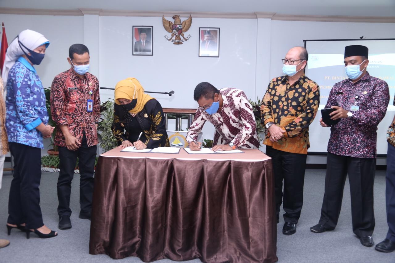 foto Walikota Tanjungpinang mendatangani kerjasama bidang pendidikan dengan pihak mangemen unipersitas PBC Bintan