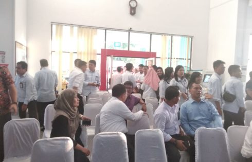 Diacara pisambut itu seluruh unit pelayanan pegawai PLN Tanjungping tampak hadir memenuhi ruangan kantor PLN, kemudian acara dilanjutkan dengan seluruh peserta yang hadir membrikan salam kepada pejabat lama maupun yang baru, diakhiri foto bersama. (Leader)