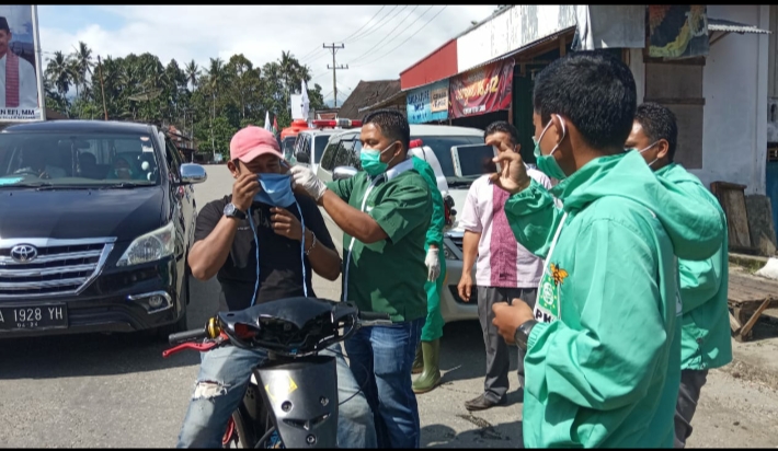 Sekitar 1500 lembar masker dibagi bagikan dan sejumlah rumah warga disemprot,kegiatan ini berlangsung di Kecamatan Pauh Duo,Kabupaten Solok Selatan.Rabu (15/4) hari ini.