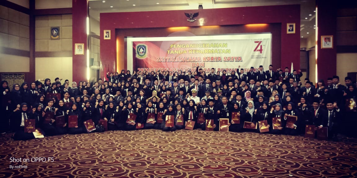 Penyerahan tanda kehormatan bagi PNS yang telah mengabdi selama 10, 20 hinga 30 tahun tersebut berlangsung riuh, terutama saat para penerima Satyalancana dari pengabdian 10 tahun, meminta berfoto bersama dengan Plt Gubernur bersama FKPD (Forum Koordinasi Pimpinan Daerah).