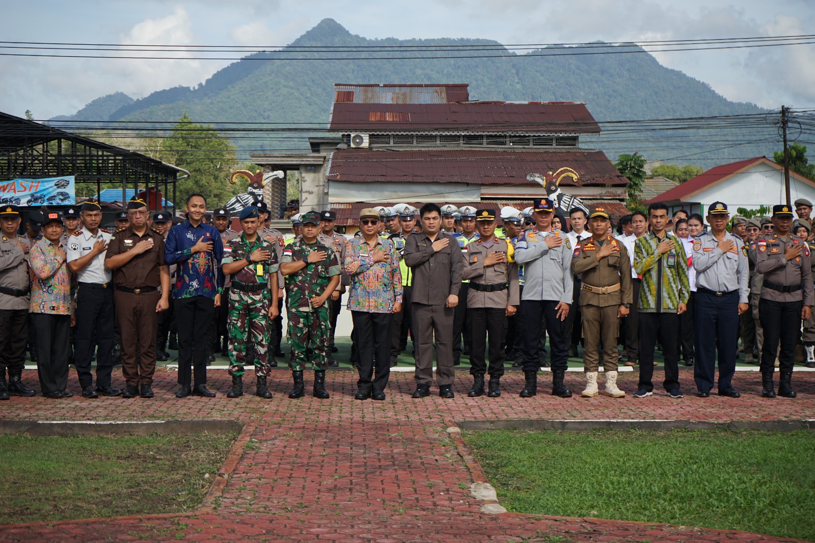 Apel tersebut dipimpin oleh Wakapolres Bengkayang, Kompol Suparwoto, S.H., bersama Bupati Bengkayang, Sebastianus Darwis, S.E., M.E., serta dihadiri unsur Forum Koordinasi Pimpinan Daerah (Forkopimda), pimpinan instansi vertikal, dan para pejabat utama Polres Bengkayang.