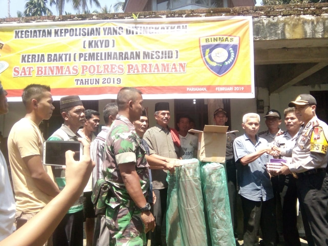“Selesai goro kita jangan bubar dulu karena ada beberapa bingkisan yang akan diserahkan pak Kapolres secara simbolis untuk masjid, jangan dinilai dari jumlahnya,tetapi nilailah dari kepeduliannya.” kata Kapolsek.