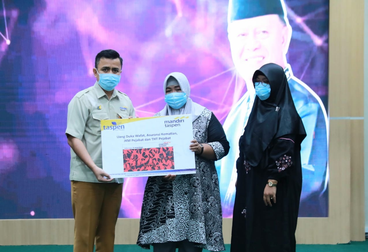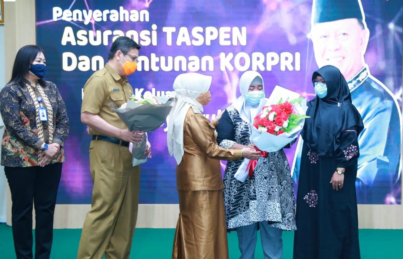 Dalam acara tersebut diserahkan santunan dari PT. Taspen yang diserahkan langsung oleh Kepala PT. Taspen Cabang Tanjungpinang, Mardiyani Pasaribu dan juga dari Korpri Tanjungpinang diserahkan oleh Ketua Dewan Pengurus Korpri Kota Tanjungpinang, Drs. Riono, M.Si.