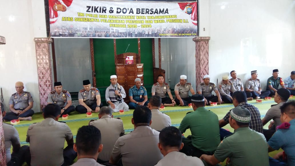 Tanjungpinang (leadernusantara.com) – Polres Tanjungpinang bersama jajaran TNI serta masyarakat menggelar zikir dan Do’a bersama, di Mesjid Al Marhamah Jl. Ahmad Yani Tanjungpinang, Jumat 25 Oktober 2019.