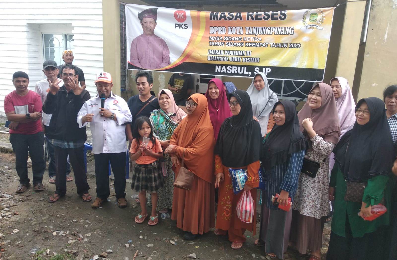 Nasrul S.IP disambut hangat oleh warga yang hadir penuh akrab pada acara reses tersebut, menurut Nasrul menyebutkan, bahwa Reses merupakan tugas anggota DPRD, tiga kali dalam setahun, atau 15 kali selama lima tahun, guna menampung aspirasi masyarakat apa yang menjadi kebutuhan dalam perbaikan pembangunan daerah warga, sesuai aspirasi masyarakat dapat dianggarkan oleh anggota DPRD Tanjungpinang, sebut Nasrul.