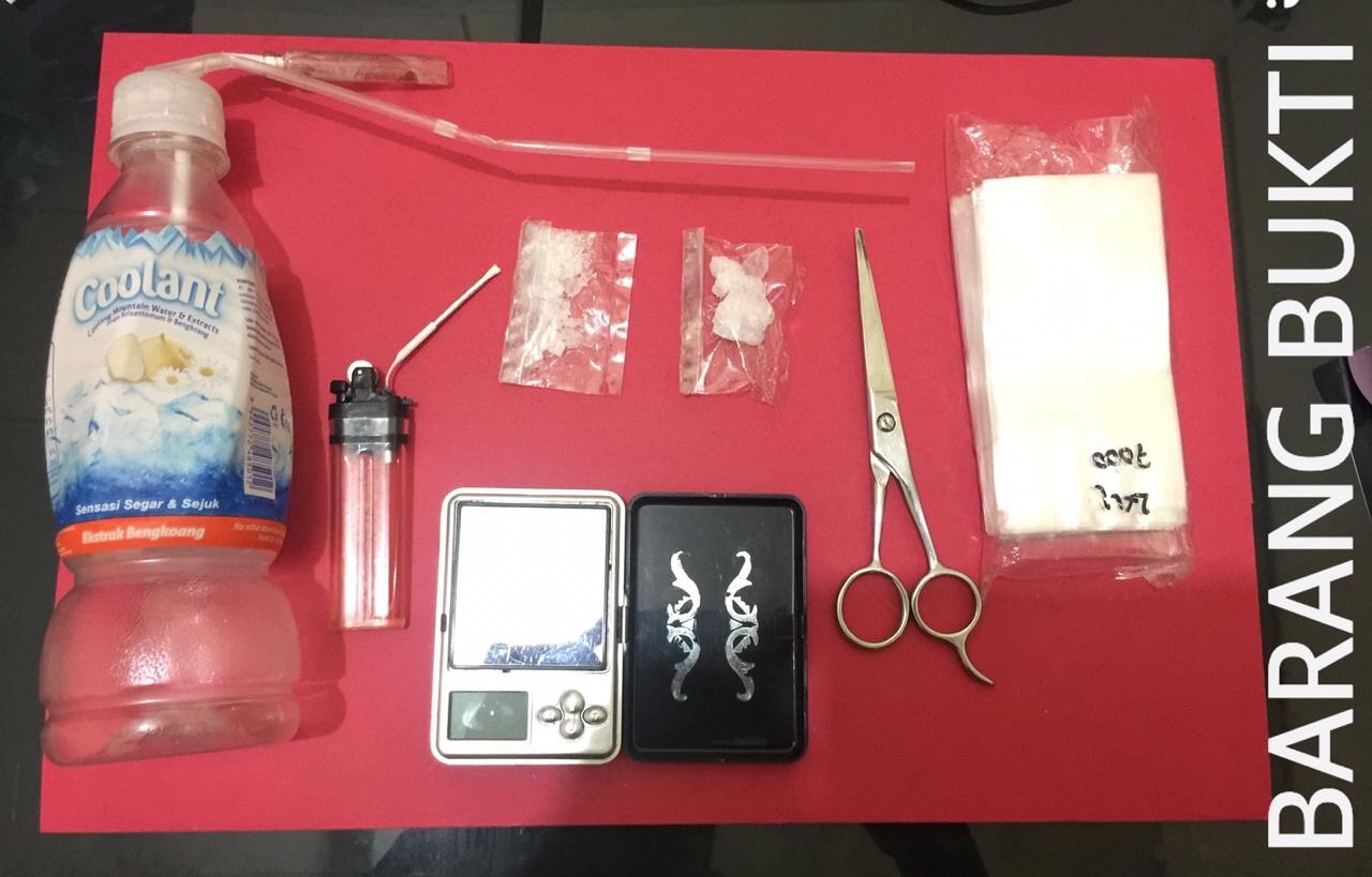 Dari tangannya telah diamankan, 2 (dua) paket diduga sabu seberat 3,88 (tiga koma delapan puluh delapan) gram, Seperangkat alat isap sabu, 1 (satu) buah mancis yang sudah di modifikasi, 1 (satu) unit HP merk Xiaomi, 1 (satu) ikat kantong plastik bening, 1 (satu) buah timbangan digital, 1 (satu) buah gunting