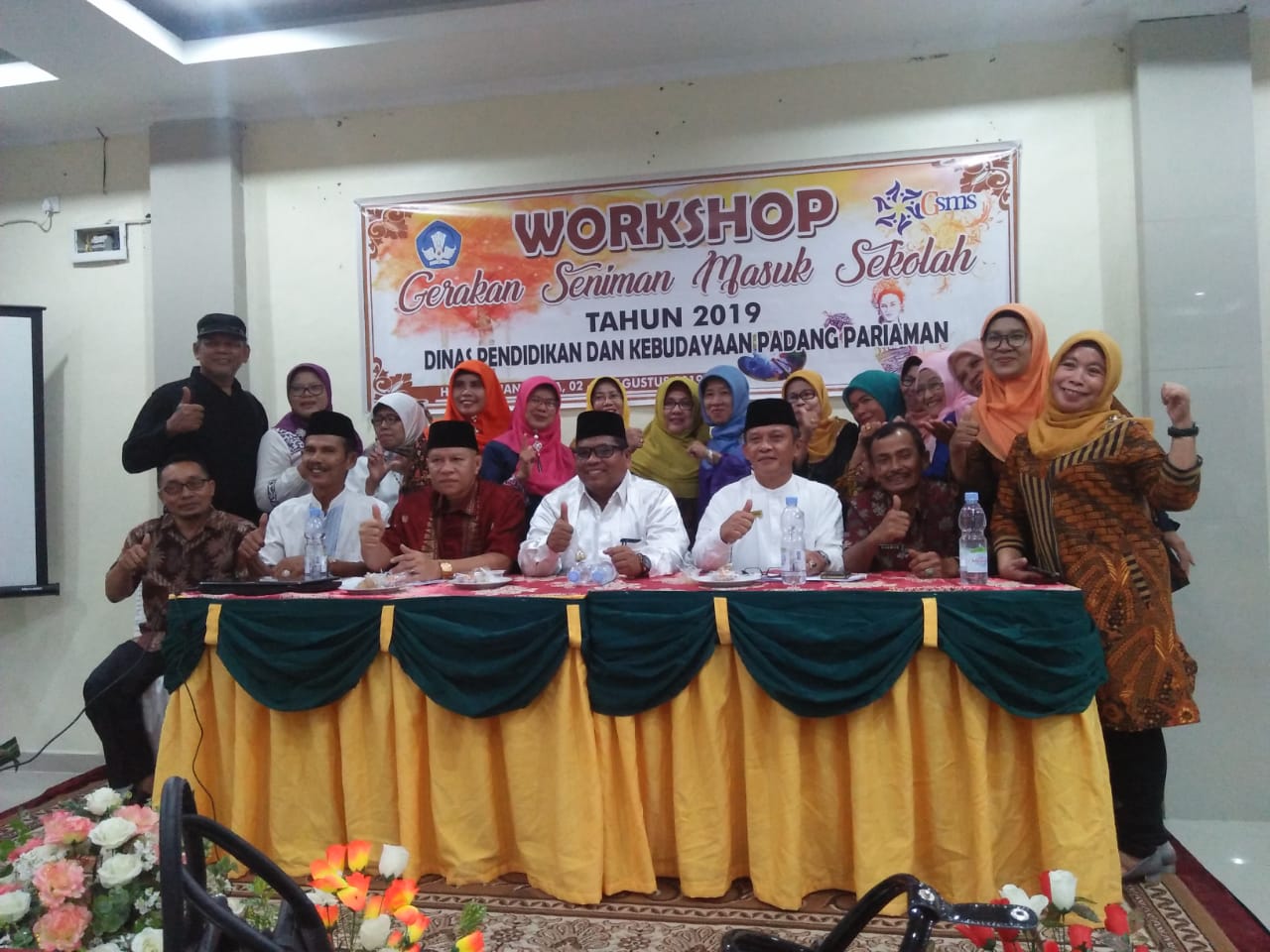 Pada kesempat itu terlihat hadir Sekretaris Dinas Pendidikan dan Kebudayaan Drs. H. Yernizen, MM, Kepala Bidang Kebudayaan Syamsimar, pengelola Gerakan Seniman Masuk Sekolah, Kepala Sekolah SD, SMP yang terlibat dalam GSMS, serta para seniman, Asisten seniman juga terlihat hadir.