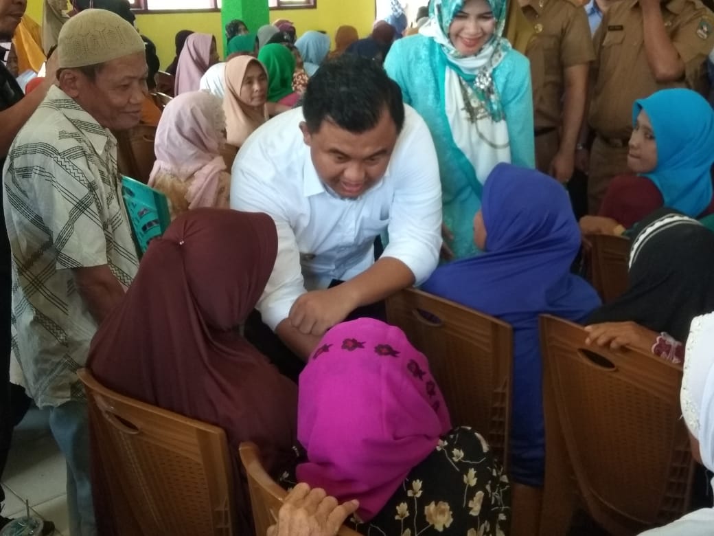Dharmasraya (leader) – Bupati Dharmasraya Sutan Riska didampingi Ketua TP-PKK Dharmasraya Ny. Dewi Sutan Riska, menyerahkan bantuan Bansos kepada 519 Orang Lansia, pada Senin 29 Juli 2019.