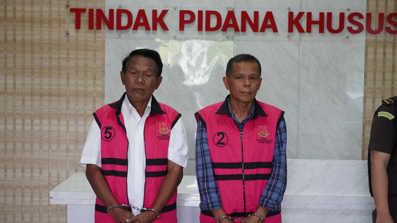 Setelah selesai dilakukan pemeriksaan terhadap Tersangka KA (Direktur PT. Belimbing Sriwijaya) dan Tersangka P (PPK) sekira pukul 16:00 Wib Tim Penyidik PIDSUS Kejati Kepri menentukan sikap untuk melakukan penahanan dengan terlebih dahulu melakukan pemeriksaan kesehatan terhadap para Tersangka oleh Tim Dokter Klinik Kejati Kepri, menyatakan sehat, maka Tim Penyidik menahan para tersangka.