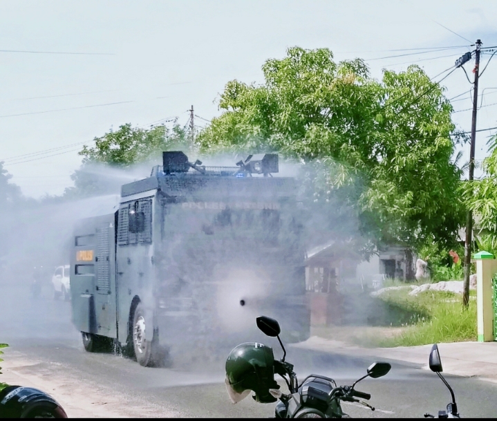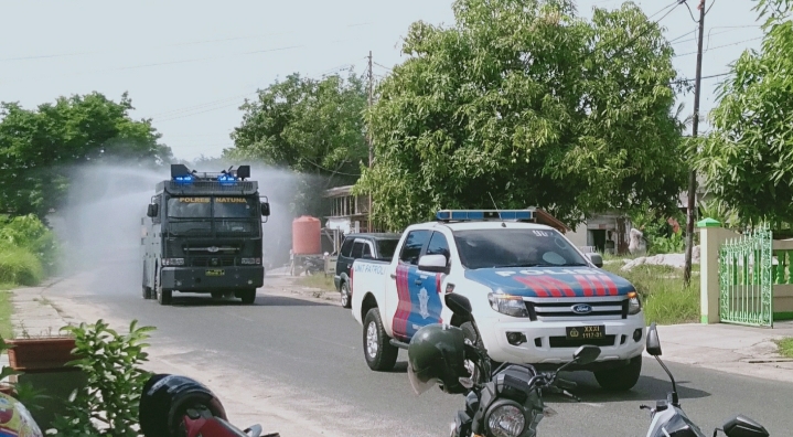 Penyemprotan tersebut menggunakan Mobil Water Cenon Polres Natuna. Kegiatan tersebut dipimpin langsung oleh Kapolres Natuna, AKBP Ike Krisnadian, S.I.K.