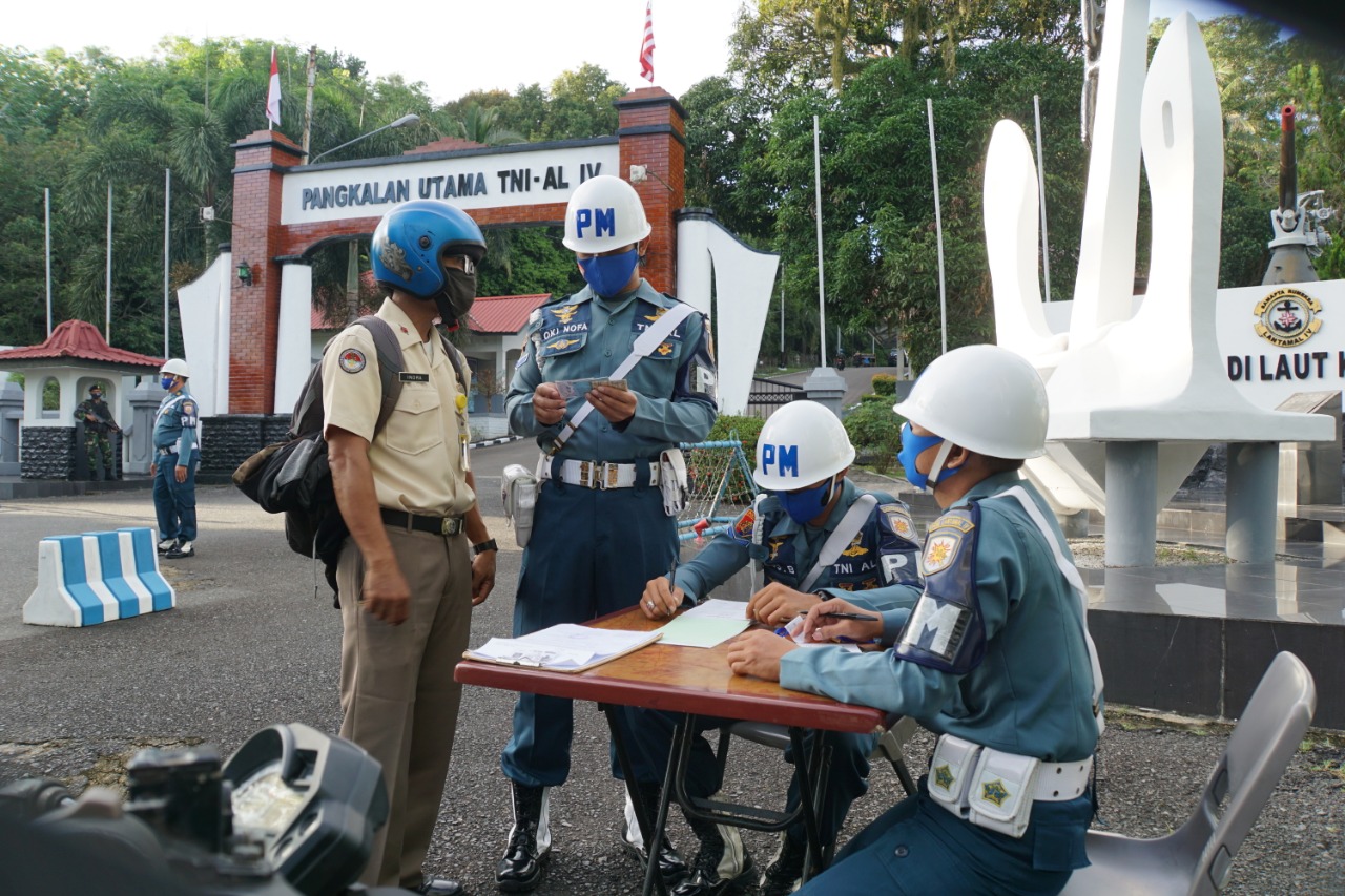 Tanjungpinang (leadernusantara.com) – Polisi Militer Pangkalan Utama TNI Angkatan Laut (Pomal Lantamal) IV Tanjungpinang, gelar Operasi Penegakan dan Ketertiban(Gaktib) rutin TW II TA.2020 dengan sandi “Waspada Wira Pari” dipimpin oleh Kasi Gakkum Pomal Lantamal IV Mayor Laut (PM) Anggiat Napitupulu, di depan Pintu masuk Gerbang Pos I Mako Lantamal IV Jl. Yos Sudarso No.1 Batu Hitam Kepulauan Riau (Kepri), Selasa (02/6/2020).