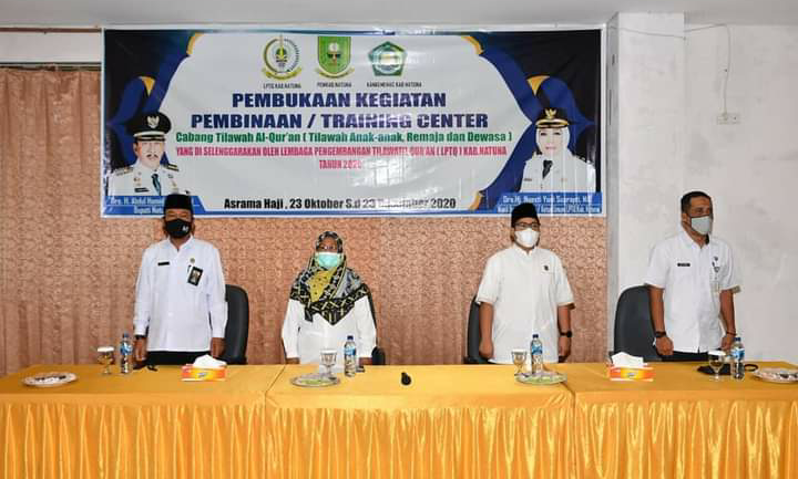 Natuna, leadernusantara.com -Wakil Bupati Natuna, Dra. Hj. Ngesti Yuni Suprapti, MA., Rabu, 4 November 2020 siang, secara resmi membuka kegiatan Pembinaan/Training Center Cabang Tilawah Al-Qur’an Kabupaten Natuna Tahun Anggaran 2020.