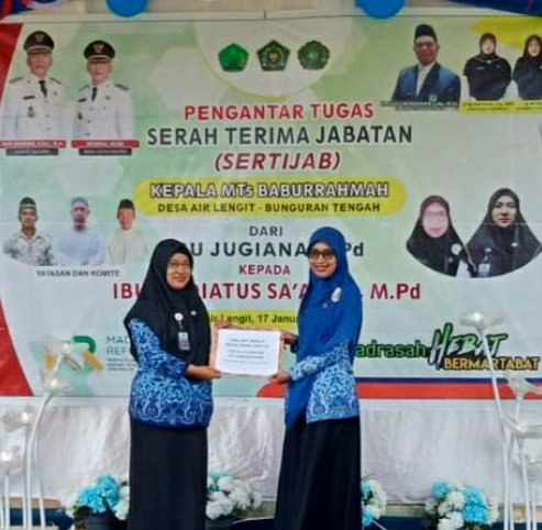 Wabup berharap dengan pergantian Kepala Sekolah MTs Baburrahman itu dapat membawa suasana baru pada kemajuan MTs ke-depan.