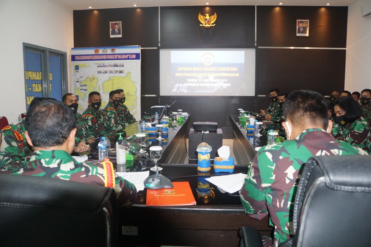 Tanjungpinang (Leadernusantara.com) – Kegiatan Uji terampil Glagaspur P-1 dan P-2 resmi ditutup Danlantamal IV yang diwakili Komandan Pangkalan Utama TNI Angkatan Laut (Wadanlantamal) IV Tanjungpinang Kolonel Marinir Gatot Mardiyono, S.H., di Ruang Rapat Dinas Potensi Maritim (Dispotmar) Mako Lantamal IV Jl. Yos Sudarso No.1 Batu Hitam Tanjungpinang Kepri, Selasa siang(15/9/2020).