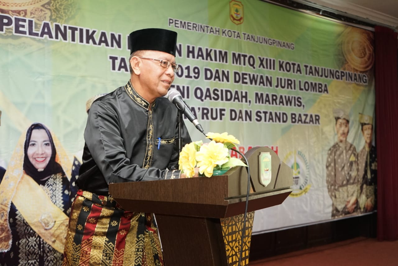 Walikota Tanjungpinang, H. Syahrul, S.Pd, melantik Dewan Hakim dan Juri Seni Qasidah, Marawis, Pawai Ta’aruf dan Bazar dalam acara Musabaqah Tilawatil Qur’an (MTQ) ke-XIII Kota Tanjungpinang pada Selasa 2 April 2019 di Aula Bulang Linggi.