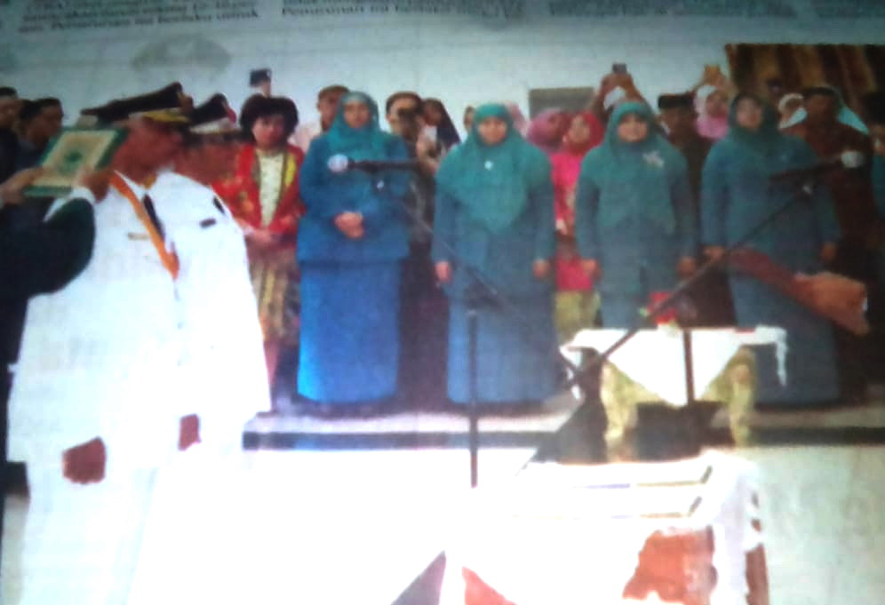 Usai pelantikan walikot dan wakil walikota Padang, dilanjutkan dengan pelantikan Ketua TP.PKK Padang, Ketua Dekranasda Padang, Harneli Bahar oleh ketua TP.PKK Sumbar, Nevi Zuarina Irwan Prayitno. (Aj)