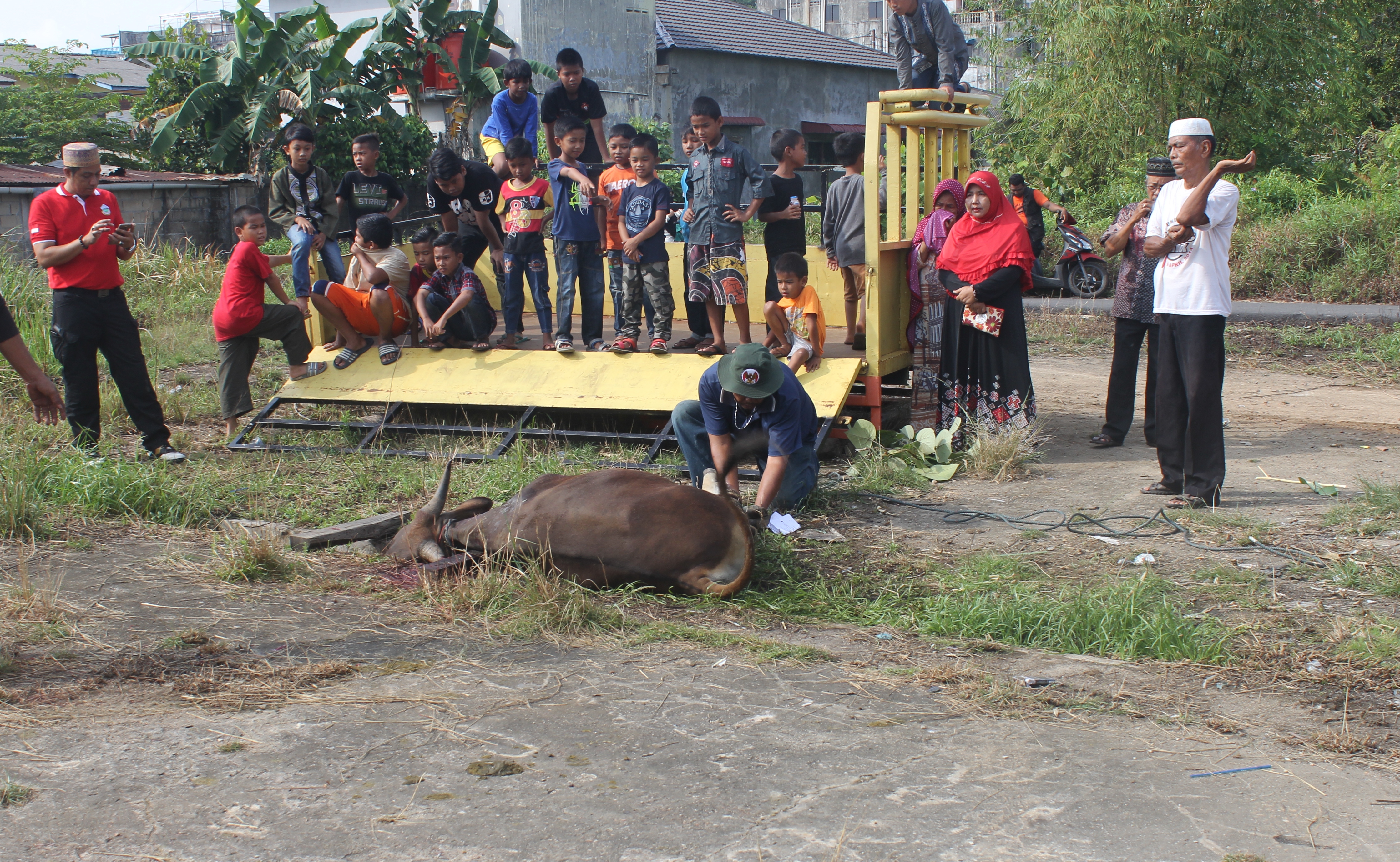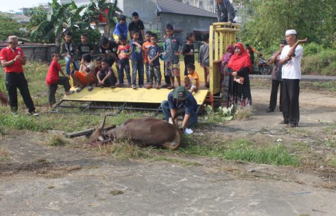 Waktu pelaksanaan penyembelihan Hewan Qurban (Sapi) terlihat dihadiri peserta Qurban dan unsur Panitia, beserta penugurus Surau Almuha Jirin, dari Persatuan Keluarga Daerah Piaman yang ada di Tanjungpinang. (sdr)